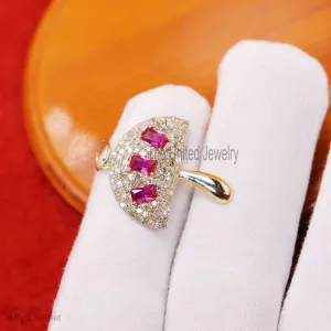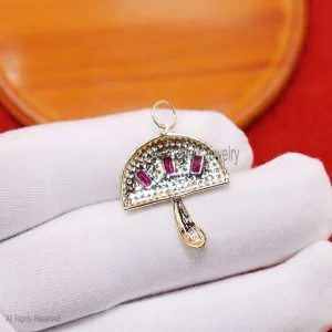 14K Gold Diamond Mushroom Pendant, Handmade Magic Diamond Mushroom Pendant, Mushroom 14k Pendant Necklace, Gemstone Mushroom Pendant