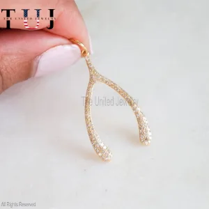 14k Gold Diamond Wishbone Charm, Diamond Wishbone Necklace