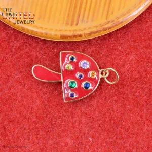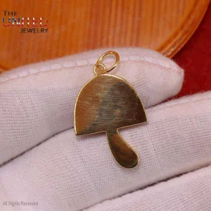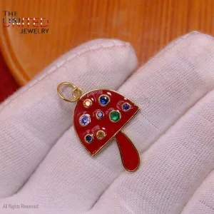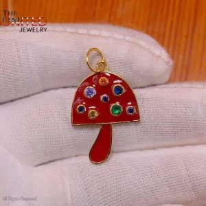 14k Gold Enamel and Gemstones Mushroom Charm, Gold Multisapphire Mushroom Charm, Gold Enamel Mushroom Charm Pendant Jewelry