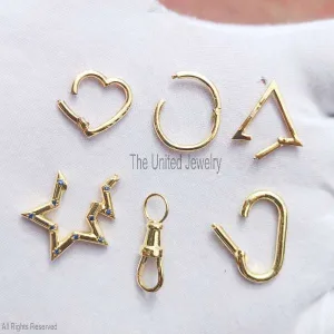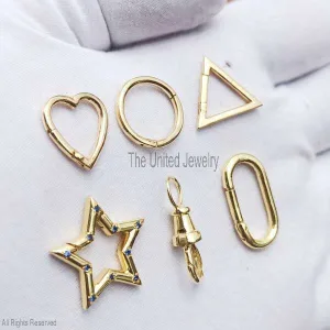 14K Gold Multiple Charm Holder, Gold Heart Charm Holder, Gold Triangle Charm Holder, Gemstone Star Charm Holder, Gold Swivel Lock, Gold Enhancer