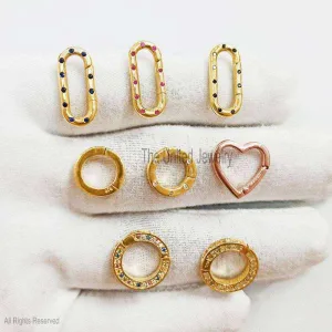 14K Gold Multisapphire Charm Holder, 14K Enhancer Lock, 14K Gold Push Lock, 14K Gold Snap Lock, 14k Gold Jewelry, 14K Gold Clasp Lock