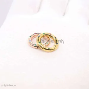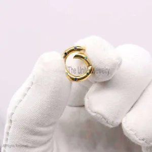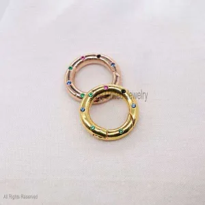 14k Gold Multisapphire Round Shape Handmade Charm Holder Lock, 14k Gold Push Lock, Snap Lock Jewelry
