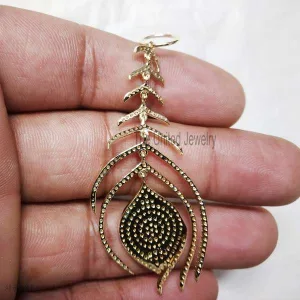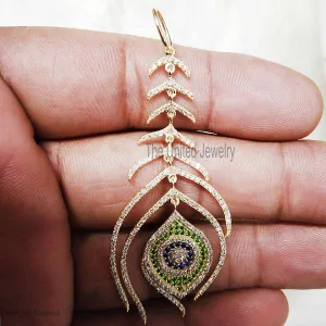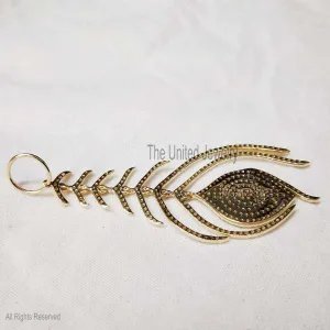 14k Gold Natural Diamond Peacock Feather Wings Pendant, Diamond Leaf Peacock Pendant, Gold Peacock Wings Pendant Jewelry