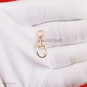 14k Gold Natural Ruby Charm Holder, Watch Chain Clip, Dog Clip, Swivel Clip, Charm Hanger, Enhancer Lock, Gold Lock Jewelry