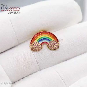 14k Gold Natural Ruby Rainbow Shape Stud Earrings, Tiny Rainbow Stud, Gift For Her