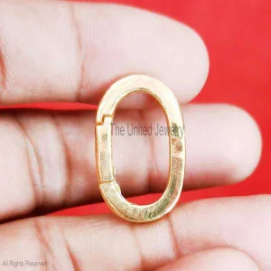 14k Gold Oval Shape Charm Holder, 14k Gold Handmade Oval Shape Enhancer Push Lock Jewelry