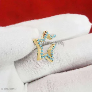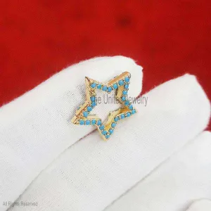 14K Gold Turquoise Star Enhancer Charm Holder, Gold Star Charm Holder, 14K Star Charm Holder, 14K Push Lock, 14K Gold Gemstone Charm Holder