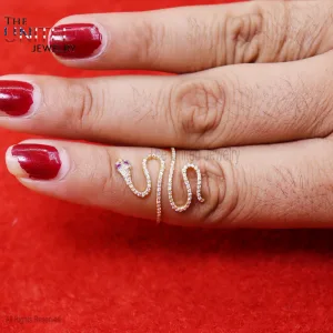 14k Rose Gold Diamond Pave Snake with Ruby Eye Ring, 14k Snake Gold Ring, Snake Gold Diamond Ring Jewelry