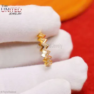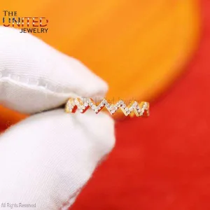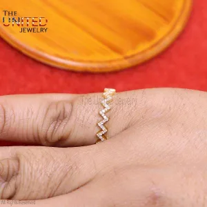 14k Yellow Gold Diamond Ring, Diamond Zig Zag Ring, Gold Wave Ring, Diamond Gold Wedding Band Ring, 14k Gold Diamond Ring Jewelry