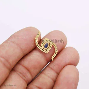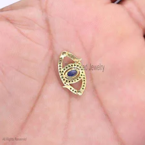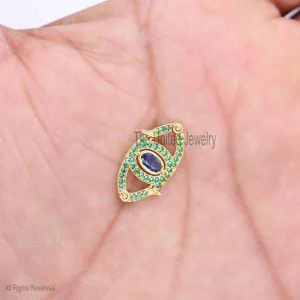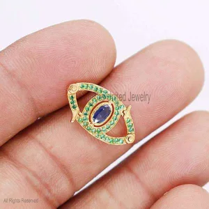 14k Yellow Gold Evil Eye Shape Tsavorite Charms Holder, Charms Holder Lock, 14k Gold Evil eye Push Lock, 14k Gold Enhancer Jewelry
