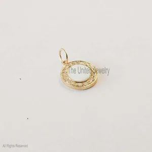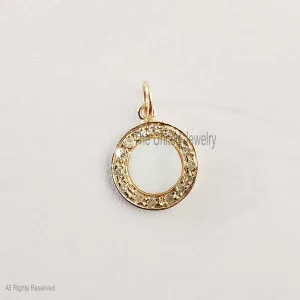 14k Yellow Gold Pave Diamond Round Pearl Charms Vintage Pendant Jewelry, 14k Gold Pearl Charms Pendant