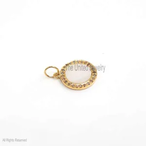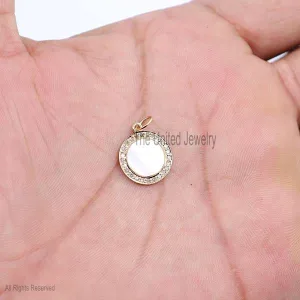 14k Yellow Gold Pave Diamond Round Pearl Charms Vintage Pendant Jewelry, 14k Gold Pearl Charms Pendant