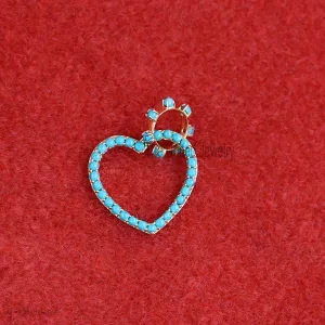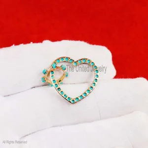 18K Gold Turquoise Heart Enhancer Necklace, 18K Gold Turquoise Charms, 18k Gold Heart With Round Bail Charms, Gold Dainty Heart Pendant