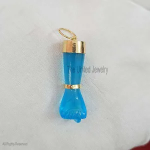 925 Silver Blue Topaz Figa Hand Charm Pendant Jewelry, Blue Topaz Figa Charm, Silver Figa Charm, Gemstone Figa Charm Jewelry