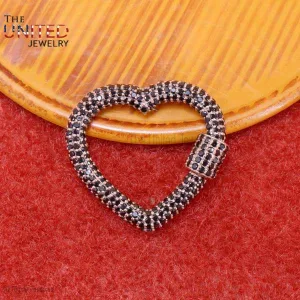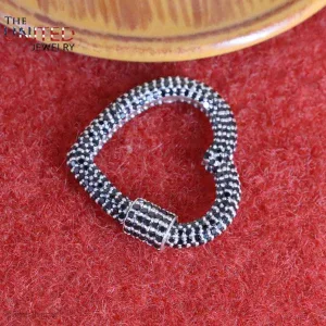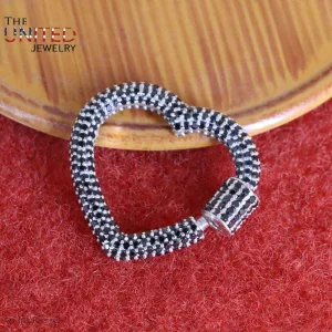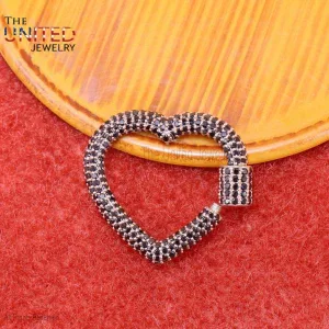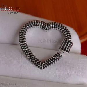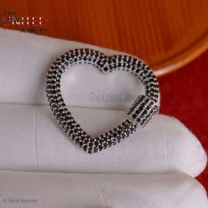 925 Sterling Silver Black Spinel Heart Shape Carabiner Lock Jewelry, Heart Shape Carabiner Lock Jewelry, Handmade Silver Lock Jewelry
