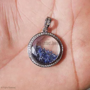925 Sterling Silver Blue Sapphire Shaker Pendant Pendant for Women, Diamond Shaker Pendant, Silver Crystal Shaker Pendant, Diamond Shaker Pendant