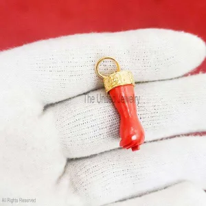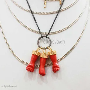 925 Sterling Silver Coral Figa Hand pendant Jewelry, Silver Figa Charm, Gemstone Figa Pendant Jewelry