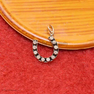 925 Sterling Silver Diamond Enamel Horse Shoe Necklace, Silver Horse Shoe Charm, Sterling Silver Diamond Horseshoe Pendant, Silver Dainty Horseshoe Pendant