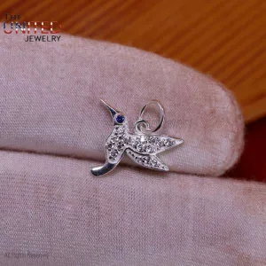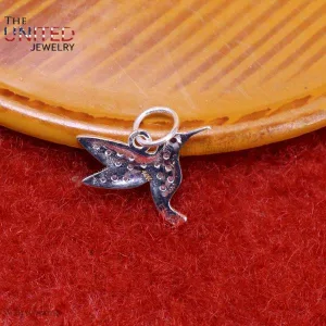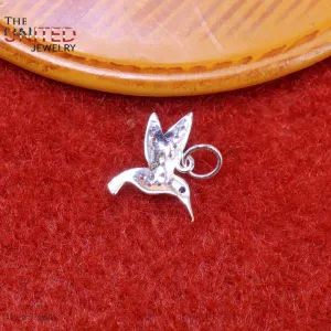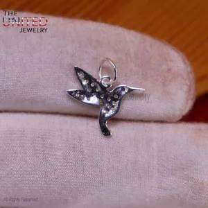 925 Sterling Silver Diamond Hummingbird Charm, Silver Humming Bird Charm, Handmade Silver Diamond Humming Bird Charm Jewelry