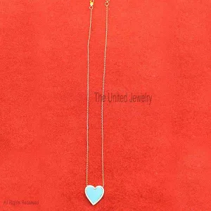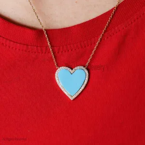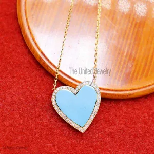 925 Sterling Silver Diamond Pave and Turquoise Heart Necklace, Heart Necklace Jewelry For Women’s