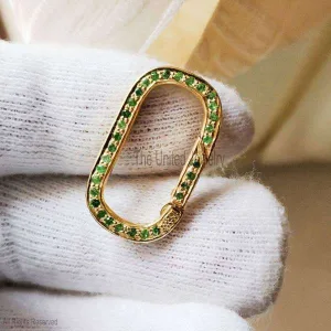 925 Sterling Silver Emerald Charm Holder, Silver Emerald Push Lock, Handmade Sterling Silver Enhancer Jewelry