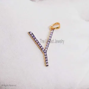 925 Sterling Silver Gemstone Alphabets A to Z Pendant, Gemstone Y Alphabet Pendant, Silver Y Letter Pendant, Handmade Jewelry