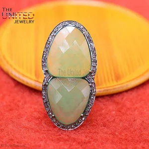 925 Sterling Silver Green Onyx Ring Jewelry, Diamond Finger Ring, Green Onyx Silver Ring