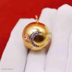 925 Sterling Silver Half Moon Ball Pendant, Silver Sapphire Half Moon Ball Pendant, Handmade Silver Sapphire Half Moon Ball Pendant, Handmade Silver Pendant Jewelry
