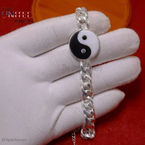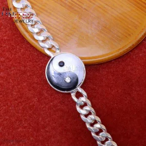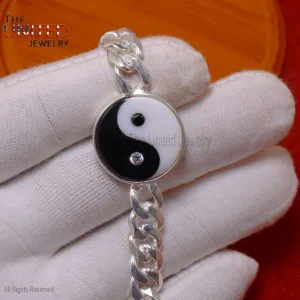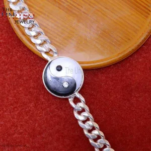 925 Sterling Silver Handmade Black Onyx With MOP Charm Bracelet For Men, Handmade Ying Yang Bracelet Jewelry For Men, Silver Men Bracelet