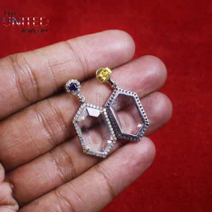 925 Sterling Silver Handmade Designer Pave Diamond Crystal Earrings Jewelry, Handmade Silver Crystal Blue Sapphire Dangle Earrings Jewelry