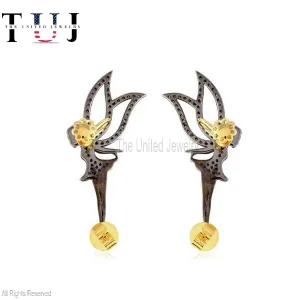 925 Sterling Silver Handmade Pave Diamond With Blue Sapphire Fairy Studs Earrings For Women