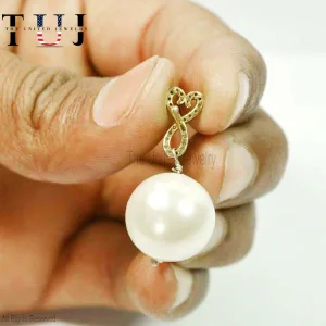 925 Sterling Silver Handmade Pave Diamond With Pearl Ball Dangle Earrings For Women’s