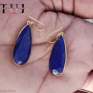 925 Sterling Silver Lapis Lazuli Handmade Designer Dangles Earrings For Women