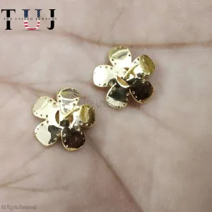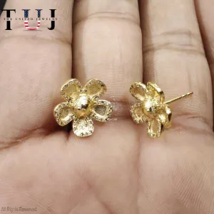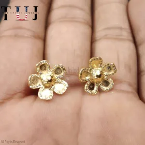 925 Sterling Silver Natural Pave Diamond Flower Shape Stud Earrings Jewelry