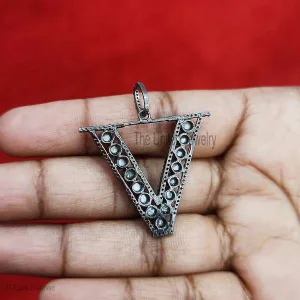 925 Sterling Silver Natural Pave Diamond Handmade V Shape Pearl Monogram Pendant Jewelry, Personalized Silver Monogram Jewelry