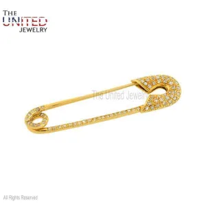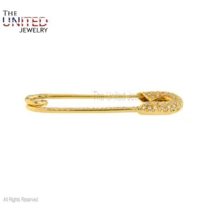 925 Sterling Silver Natural Pave Diamond Safety Pin Jewelry, Silver Safety Pin, Silver Pins Jewelry, Handmade Diamond Safety Pin Gift For Her