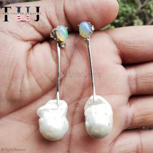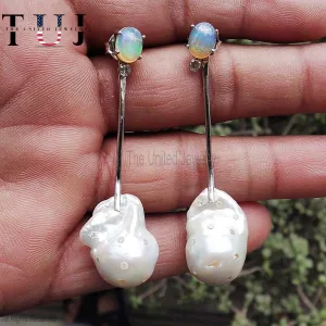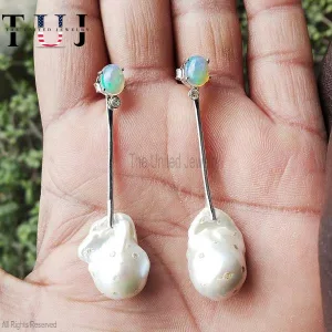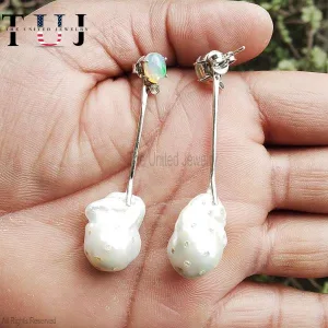 925 Sterling Silver Opal With Pearl Handmade Dangles Earrings For Women