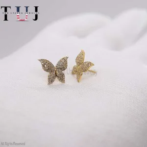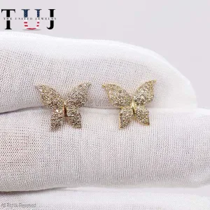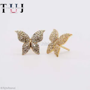 925 Sterling Silver Pave Diamond Butterfly Studs Earrings For Women