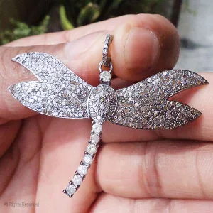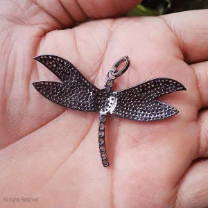 925 Sterling Silver Pave Diamond Dragonfly Pendant, Handmade Designer Silver Diamond Dragonfly Charm Pendant, Dragonfly Charm