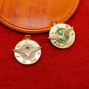 925 Sterling Silver Pave Diamond Eagle Wings Charm Enamel Pendant, Silver Eagle Wings Charm Pendant, Handmade Charm Jewelry