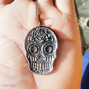 925 Sterling Silver Pave Diamond Enamel Skull Pendant Charm Jewelry, Diamond with Enamel Skull Charm, Silver Enamel Diamond Skull Charm Jewelry