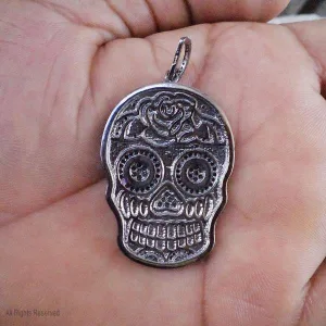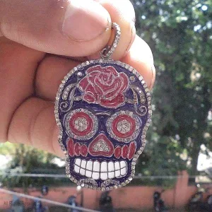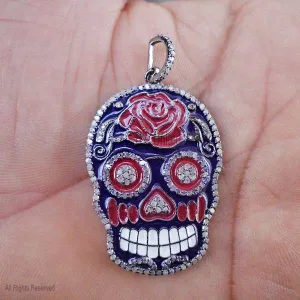 925 Sterling Silver Pave Diamond Enamel Skull Pendant Charm Jewelry, Diamond with Enamel Skull Charm, Silver Enamel Diamond Skull Charm