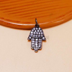 925 Sterling Silver Pave Diamond Handmade Hamsa Charm Pendant