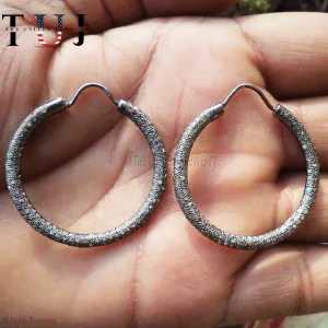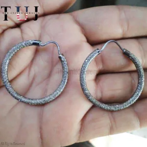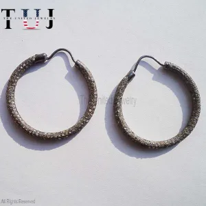925 Sterling Silver Pave Diamond Handmade Hoop Earrings For Women