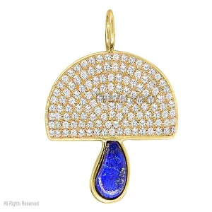 925 Sterling Silver Pave Diamond Lapis Lazuli Magic Mushroom Pendant, Silver Mushroom Necklace, Gemstone Mushroom Pendant, Diamond Lapis Lazuli Mushroom pendant Jewelry