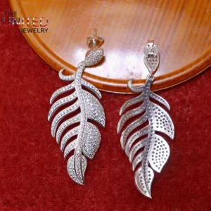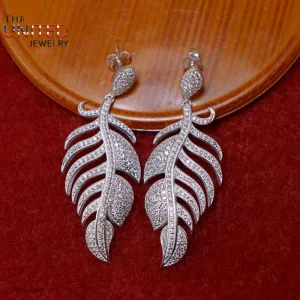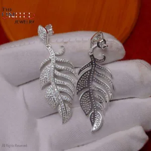 925 Sterling Silver Pave Diamond Leaf Dangle Earrings, Handmade Pave Diamond Leaf Dangle Earrings Jewelry For Women, Leaf Dangle Earrings