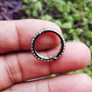 925 Sterling Silver Pave Diamond Round Charm Holder, Pave Diamond Round Push Lock