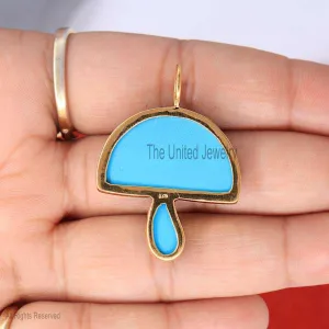 925 Sterling Silver Pave Diamond Star Moon Turquoise Magic Mushroom Pendant, Silver Mushroom Necklace, Gemstone Mushroom Pendant, Diamond Turquoise Mushroom pendant Jewelry