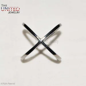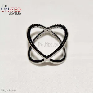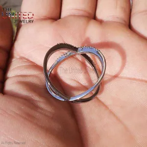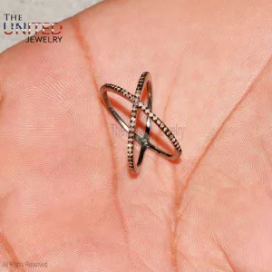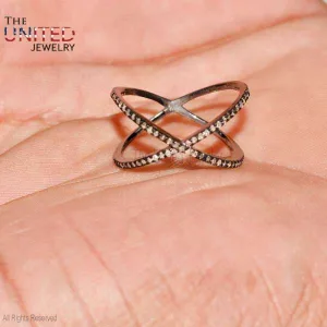 925 Sterling Silver Pave Diamond X Shape Ring Jewelry, X Ring, Diamond X Ring