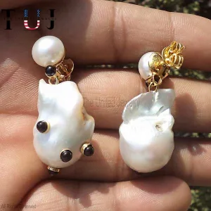 925 Sterling Silver Pearl With Black Onyx Handmade Dangles Earrings For Women